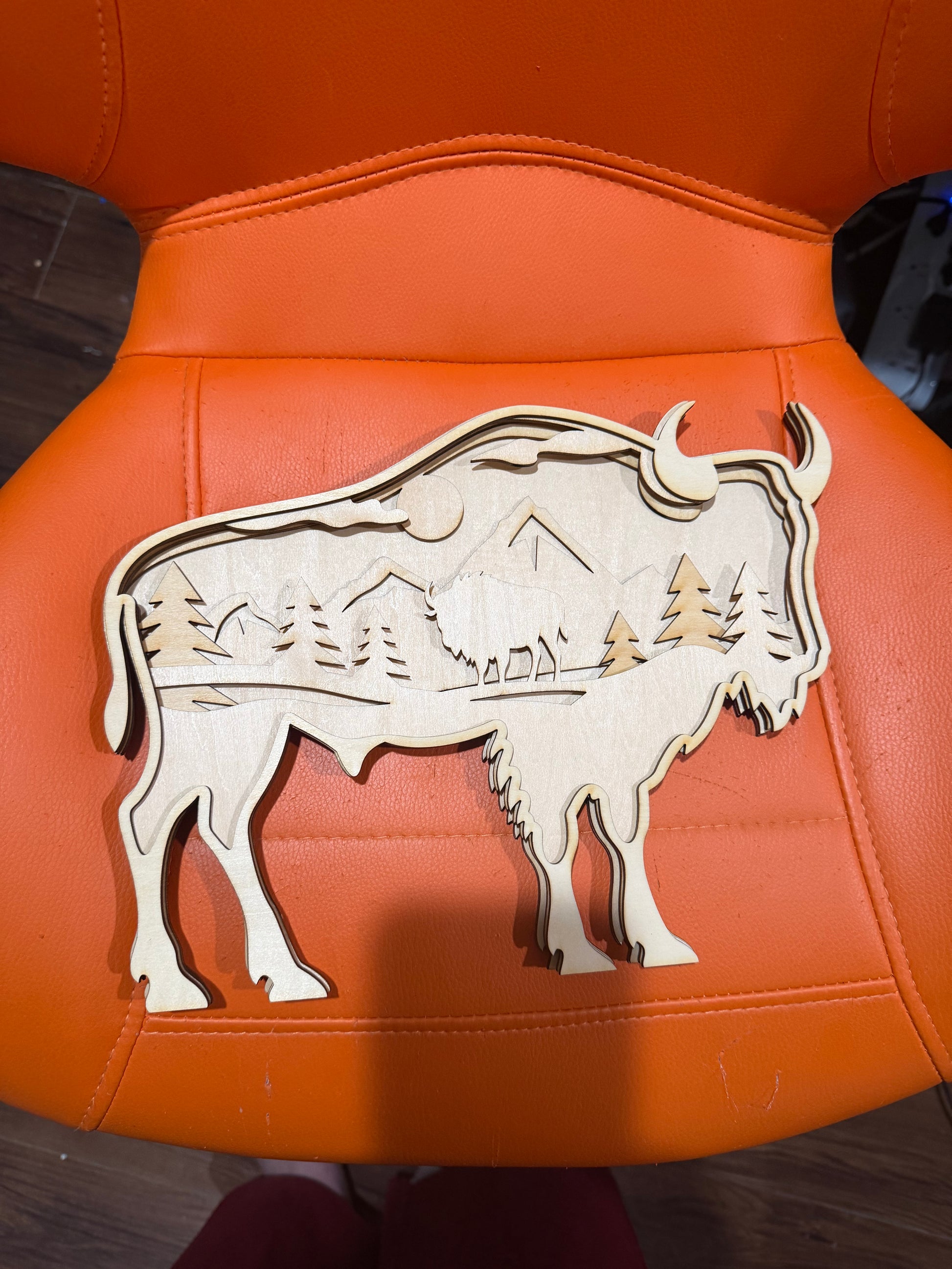 Layered laser cut basswood bison. Unfinished. Or Finished.